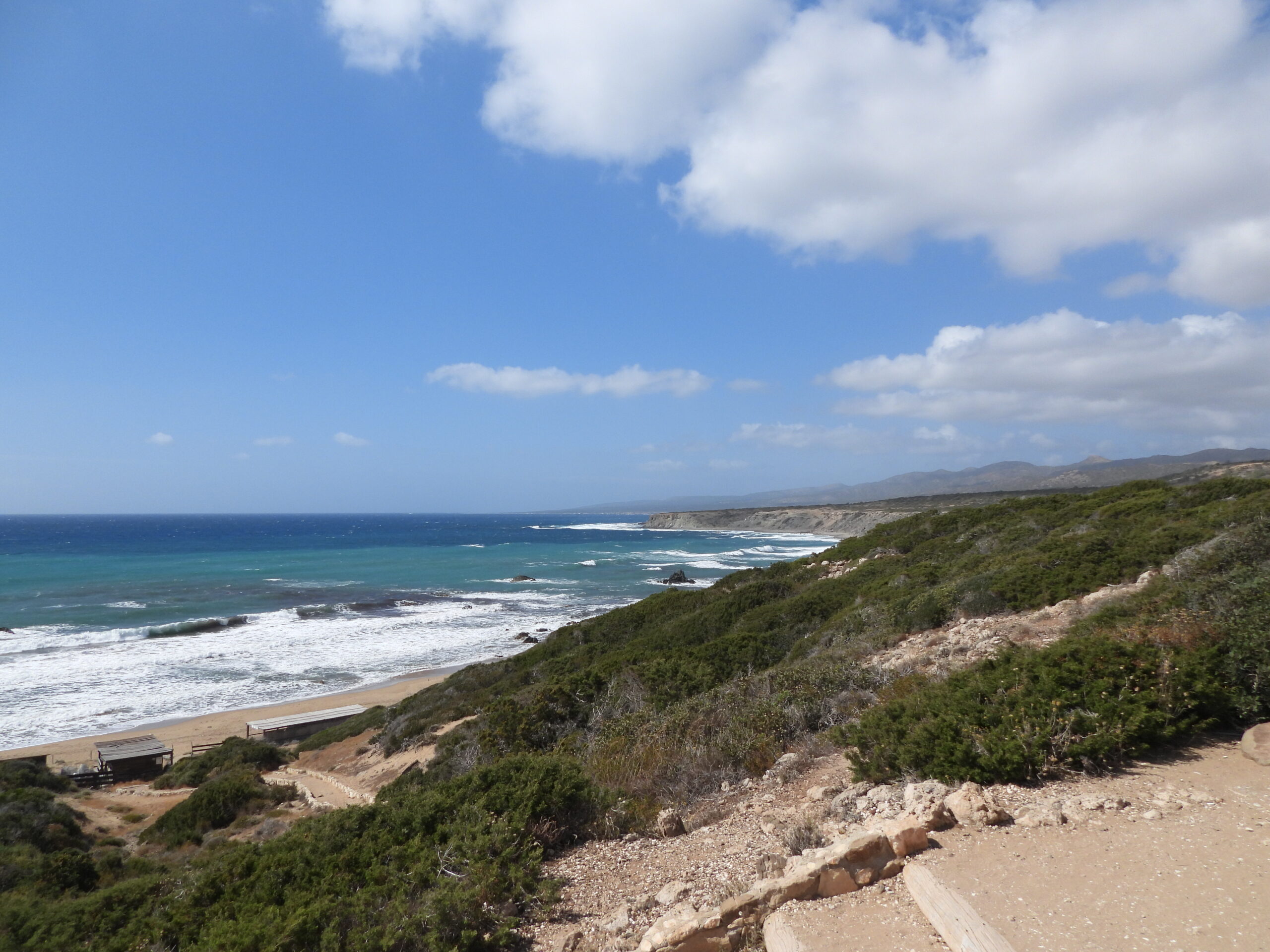 You absolutely need a 4×4 vehicle to reach Lara Bay – the final stretch of road is unpaved and rough – if hiring a car check the insurance as many companies will not cover any damage on these roads. From Paphos, take the B7 to Polis then follow signs for the Akamas Peninsula – the journey takes around 1 hour 15 minutes. Alternatively, join an organised tour from Paphos or Limassol – this is the easiest way to visit if you don’t have off-road transport. Once you arrive, a small car park sits just above the beach, and you’ll need to walk down a short dirt track to reach the shore. Past information on the turtles, and sometimes even baby turtles under short term care.